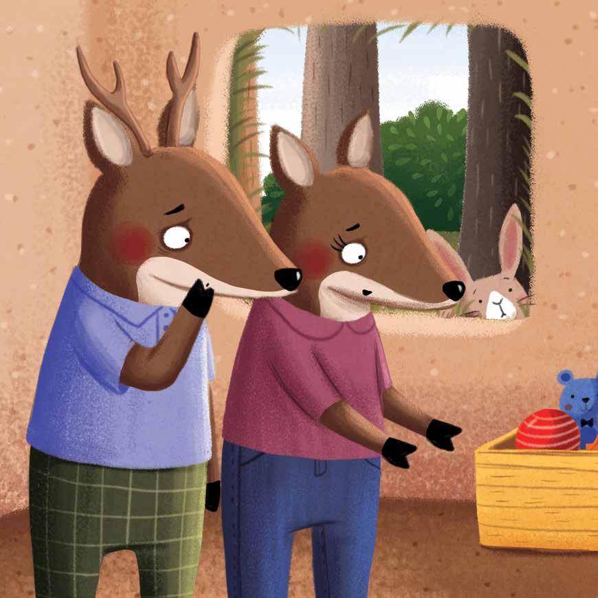 Срнини родитељи били су збуњени, будући да су је понекад виђали како плеше у својој соби. Али и даље се бунила кад је требало да иде на часове плеса. „Наша срна заиста воли да плеше. Зашто онда не жели да иде на тренинг?”, питали су се. Још неколико пута су питали и њу, али она и даље није знала да им каже зашто. Било им је жао што срница жели баш сада да одустане, јер се ближио наступ на који су били позвани и родитељи.