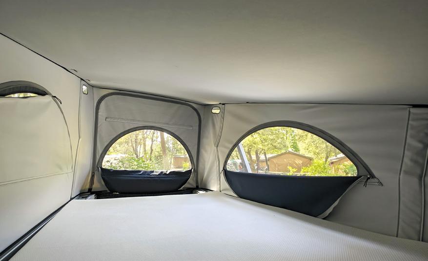 Cela se voit à l’équipement inclus. Rien ne manque: avec la ou les tentes de toit et leur matelas, on vous fournit un jeu complet de tables et de chaises, une batterie de cuisine et des couverts, un robuste frigobox, et bien d’autres choses. Quant à vous, vous n’avez plus qu’à vous mettre en quête d’endroits rêvés pour bivouaquer. Pourquoi pas les berges d’un ruisseau, une clairière dans les bois, un petit camping? Laissez libre cours à votre imagination.