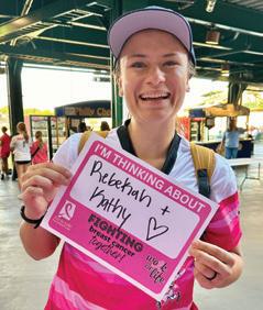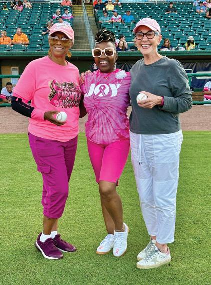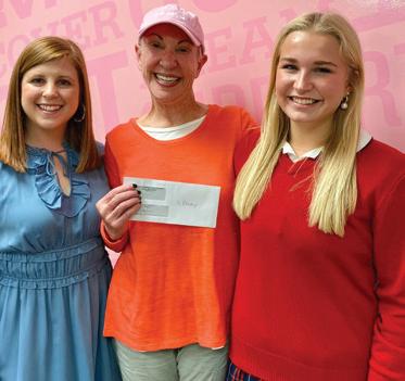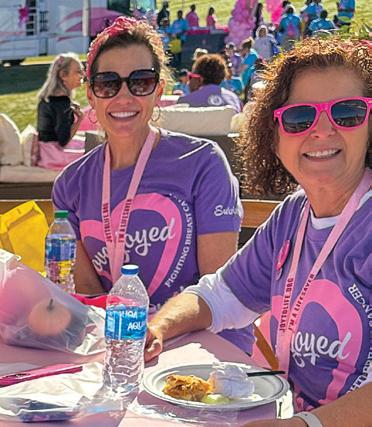 gesture makes a big impact, a fact Kay was reminded of last fall, when she encountered a man dressed in pink from head to toe. “We were having lunch at Chappy’s Deli, and I noticed his pink shoes, so I walked over and asked to shake his hand, explaining I was a breast cancer survivor and giving him a ribbon,” she says. “He told me his mom just died of breast cancer, and there was this instant connection, this sense of closeness with a complete stranger.” Now, anytime Kay and Bobby eat a meal at Chappy’s, she recalls that moment and is warmed all over again.