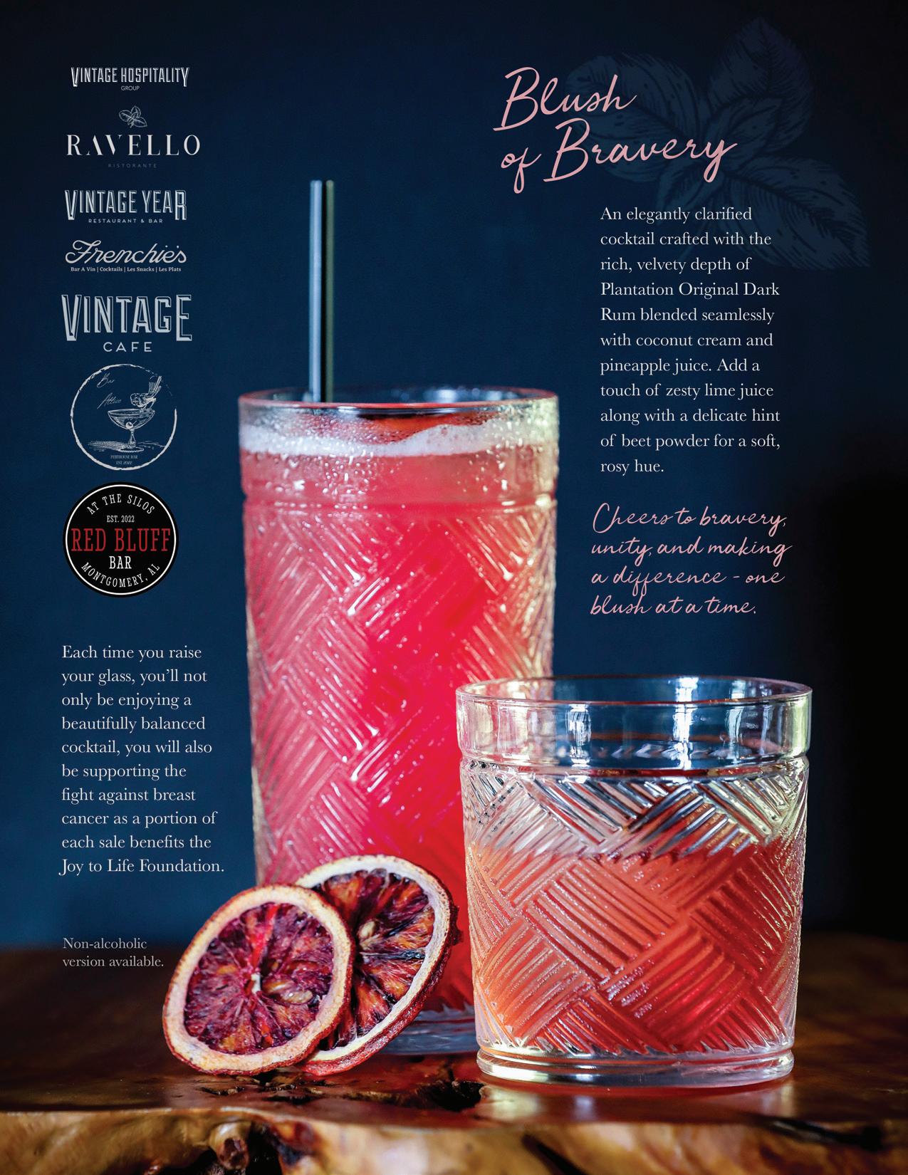 US IN OCTOBER TO CELEBRATE BREAST CANCER AWARENESS MONTH AT ANY VINTAGE HOSPITALITY GROUP EATERY. WE'LL BE TOASTING IN PINK!