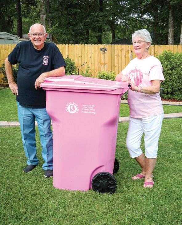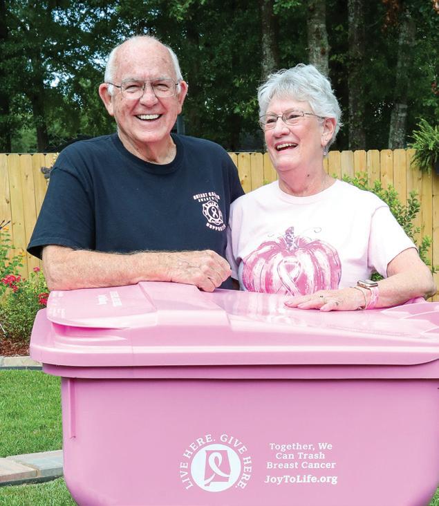 Currently, a Joy to Life Foundation pink trashcan in front of Kay’s house greets the hundreds of cars that travel the busy street every day. “If one person sees it and thinks, ‘I need to get my mammogram,’ that’s a win,” Bobby says. The two have purchased 15 more Foundation trash cans and given them to others to amplify the message.