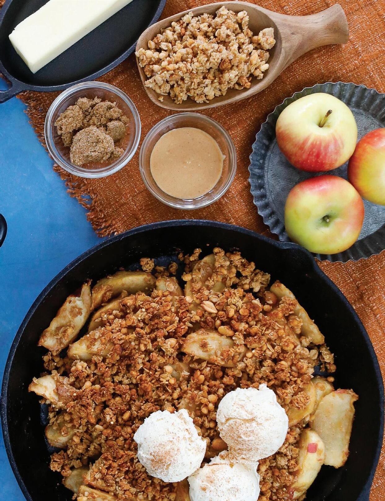 I like using peanut butter granola to maximize the peanut buttery goodness in this crisp, but any variety of your favorite granola will do! Look for the natural creamy butter that requires a good hefty stir; a naturally separated nut butter not only tosses into the apples better but it’s also free of hydrogenated oils.