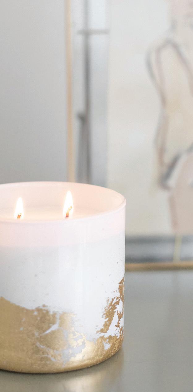 In 2018, Melissa Warnke began pouring 100-percent soy wax candles perfumed with essential oils into containers she’d hand-gilded with gold leaf, and gifting her kids' teachers with them. After she shared one on social media, she was inundated with comments; people wanted to know how they could get the sophisticated, scentsaturated candles for themselves. When the dark days of COVID hit, the comfort of her candles really resonated, and the business hit new heights. Today, customers clamor for her candles thanks to their chic containers—the hand-done gold-leaf vessels remain best sellers—and their enticing natural aromas. "Most of our scents are light and fresh, and I’m very picky about the ingredients in every fragrance oil we use,” Warnke says. “They are certified clean, so there are no chemicals or toxic elements in our oils.” Favorites include black amber and lavender, white tea and bergamot, and tobacco and bay leaf. Candle-making parties, where groups can mix their own scents and pour their own wax to create truly personal candles, distinguish the candle company too. And, she also offers custom candles for any event, organization or business. Read more about the new Joy to Life Foundation candle created by the JTL team on the facing page!