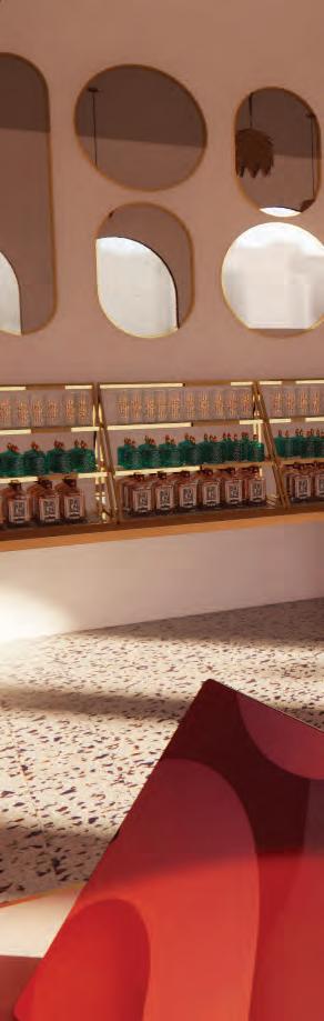 project description : this project was a commission by a group of graduate students to render the inteiror of the newest location for their project brand. they designed for the luxury brand Diptyque. they chose to create a space that was warm and inviring but still had an air of beachy class. the color palette and decor were designed/chosen based on the local culture and architecture in Lima, Peru. these were simple renderings made using Revit and enhanced with Enscape to translate the feeling of their design and desire for the space.