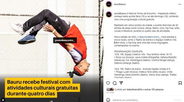 Link: https://www.socialbauru.com.br/2023/06/13/bauru-recebefestival-atividades-culturais-gratuitas-durante-quatro-dias/