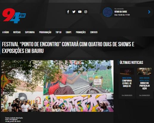 12- https://www.94fm.com.br/noticias/festival-ponto-de-encontro-contara-comquatro-dias-de-shows-e-exposicoes-em-bauru/ - data de publicação: 14/06/2023