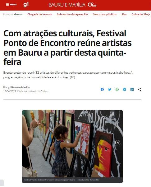 15 - https://g1 globo com/sp/bauru-marilia/noticia/2023/06/15/com-atracoes-culturaisfestival-ponto-de-encontro-reune-artistas-em-bauru-a-partir-desta-quinta-feira.ghtmldata de publicação: 15/06/2023