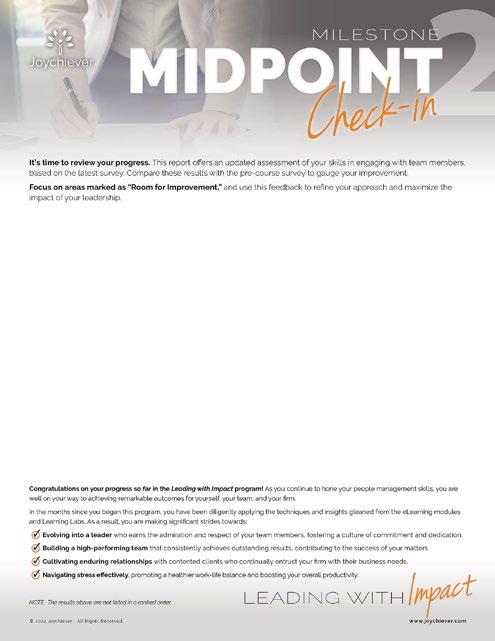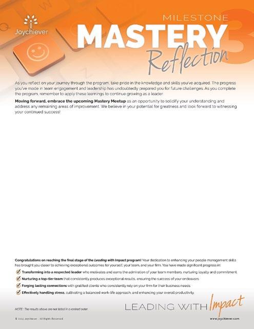 We are excited you are here! You are embarking on a journey that will change and improve management skills within your firm. Leading with Impact is not just an eLearning program. It is a one-year, comprehensive, learning experience that can have a major impact on your firm’s culture, engagement, retention and brand.