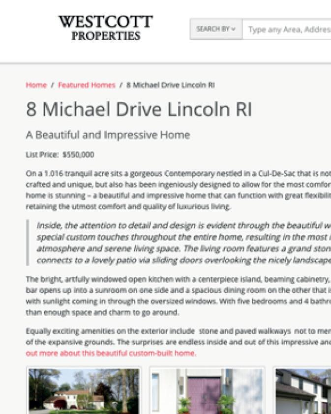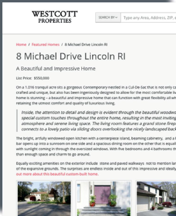 Westcott Properties takes the time to write an individual marketing description for each of its properties and shares it for anyone interested on their blog.