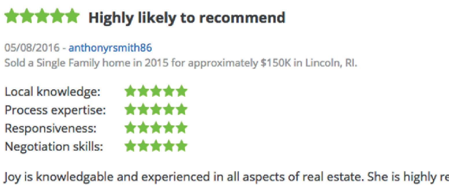 Since 2003, the Greater Providence Board of Realtors has presented Joy Riley with the Platinum Plus Award for 20 Million plus in sales per year.