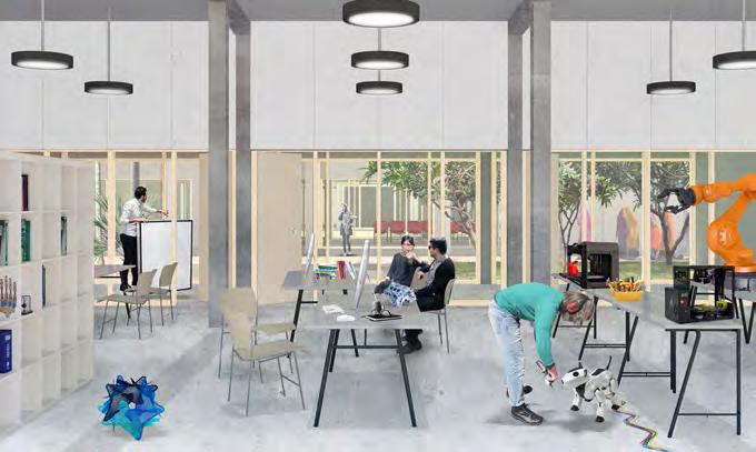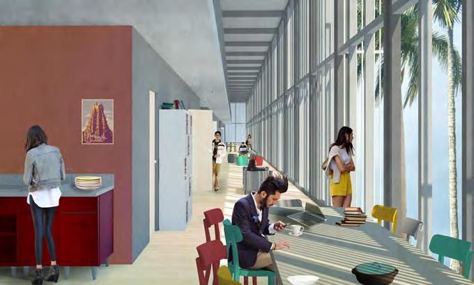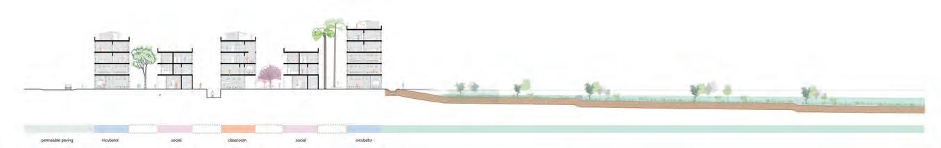 Our “urban sieve” intends to be an intentionally low-rise scheme that disperses the campus across the city within three strips of program on the ground floor: incubator, social/commercial and classroom. Ultimately, the open ground floor plan is meant to encourage the metropolitan condition of chance encounters and unpredictable convergences, conditions necessary for innovation and creativity to occur.