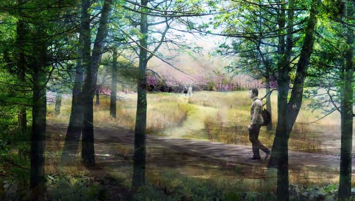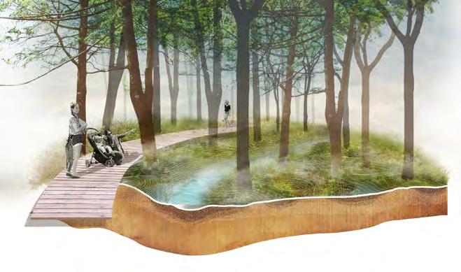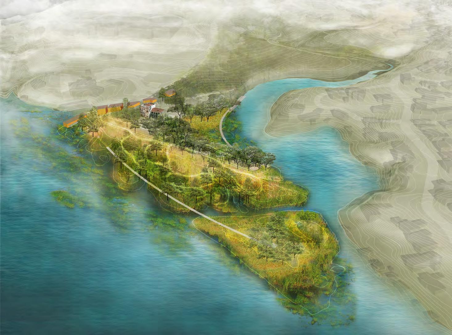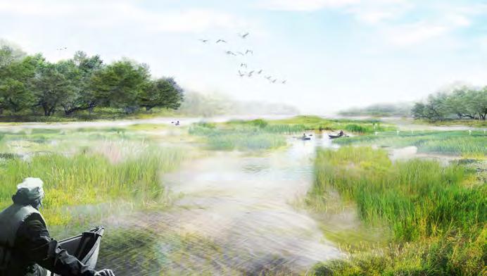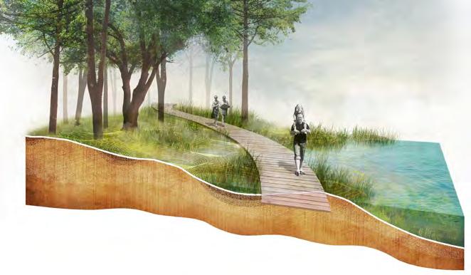 By increasing ecological edges, we seek to create unique pockets of space that make Laguna Glorai a distinct destination for visitors. One key part of hte design was toreconnect the land and water, By creating a unique boardwalk system throughout the site, we wanted to give visitors the opportunity to walk through the various ecological zones to engage with both the landscape and art.