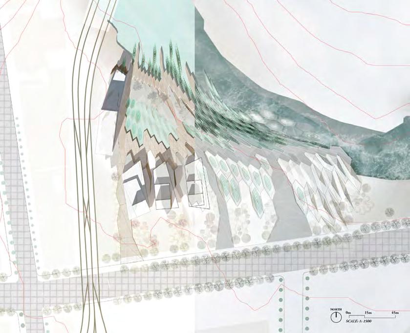 20M 20M 0 20M 0 0 1:500 SECTION B 10M 0 1:500 SECTION A 10M 0 0M 5M 0M 5M FRACTURED BEDROCK UNCOMPACTED SOIL CHECK DAM WATER LEVEL 20M 20M 0 20M 0 0 1:500 SECTION B 10M 0 1:500 SECTION A 10M 0 Ornamental Pool within Bedrock Deep Stepwell Cuts Into Natural Bedrock 43