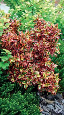 Wine coloured flowers with bronze/ green foliage.
