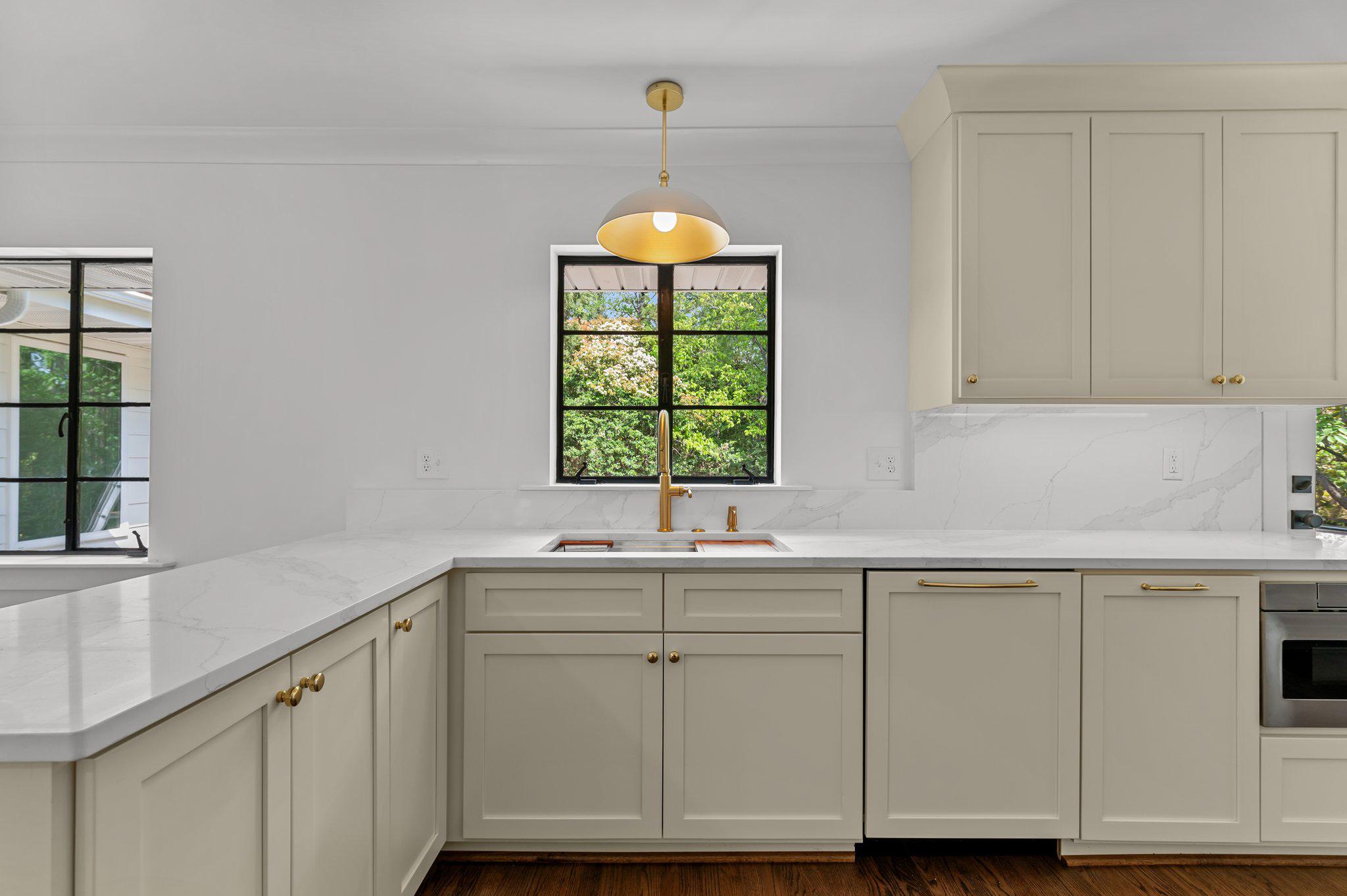 Preserved the original steel casement windows in many rooms throughout and added new windows where required, resulting in a mix of old world charm and modern comfort Enlarged the footprint of the kitchen by removing an unnecessary internal stairway that made it a more usable and livable space The tile in the basement bath adds simplicity and makes the space larger while giving it an easy elegance