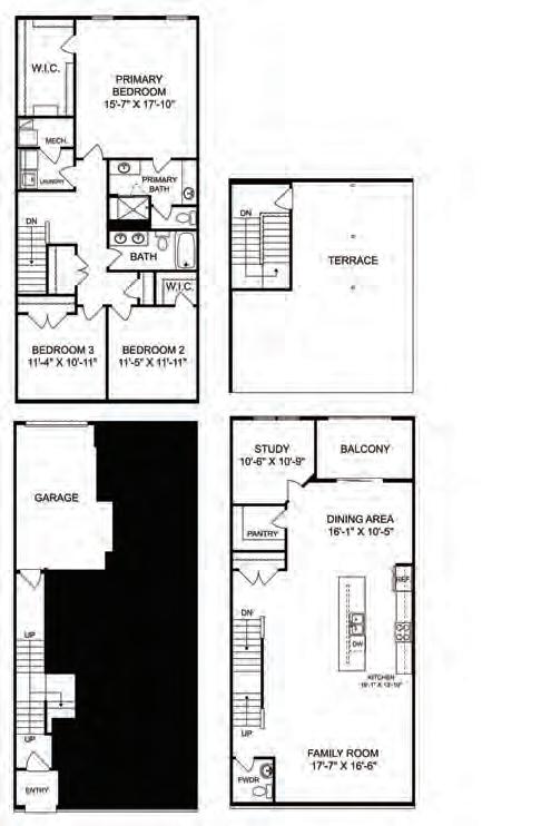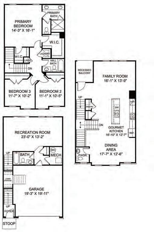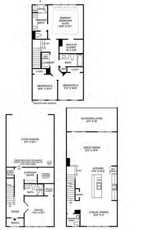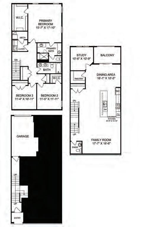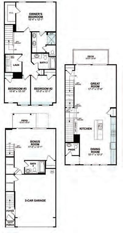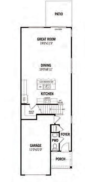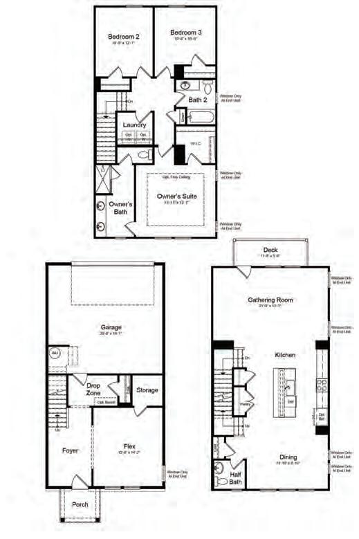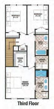 The Ryder is a modern three-story townhome in charming Wake Forest, designed with convenience in mind. It features a rear-load, 2-bay garage, a drop zone, and a flexible first-floor space ideal for a home office or gym. The gourmet kitchen boasts a large island, perfect for gatherings, and a 12080 sliding glass door in the great room enhances natural light. Upstairs, the third floor offers a spacious primary suite and two additional bedrooms. Thoughtful upgrades include Bath 3 in lieu of storage with optional shower, optional stair rails, and a second sink in Bath 2 for added functionality and comfort.