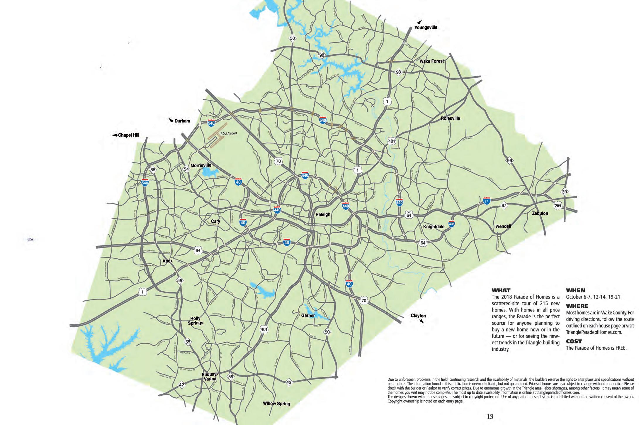 Most homes are in Wake County. For driving directions, follow the route outlined on each house page or visit TriangleParadeofHomes.com to set up your own tour.