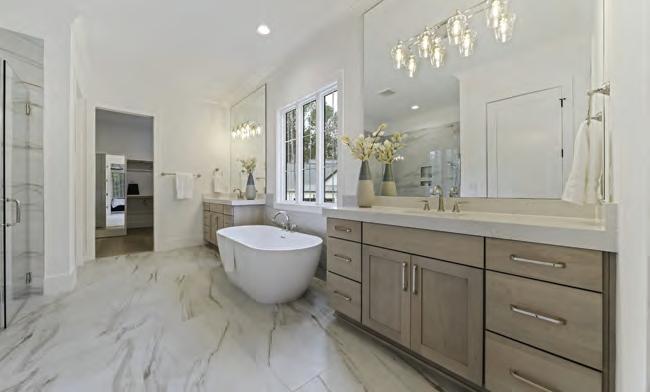 • Primary bath features separate vanities, custom vanity cabinets, spa style tile to ceiling surround shower & huge walk-in closet!