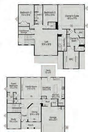 Introducing the Ashford model, a magnificent 5-bedroom home in Wake Forest, a standout entry in the Parade of Homes. This spacious two-story design by Taylor Morrison greets you with an inviting flex room, seamlessly connecting to an open-concept kitchen, dining, and gathering area, bathed in natural light from a wall of windows. Upstairs, a bright loft offers additional living space, surrounded by four well-appointed bedrooms including a luxurious owner's suite with ample closet space. With its thoughtful layout and main floor guest bedroom, the Ashford provides abundant space and comfort for modern family living.