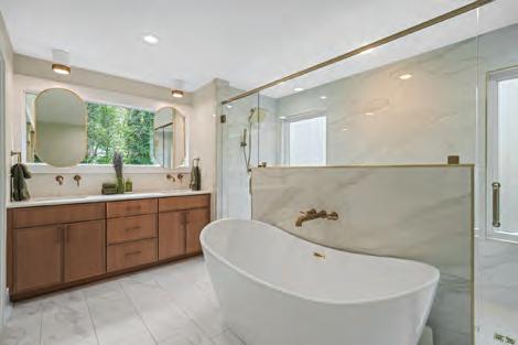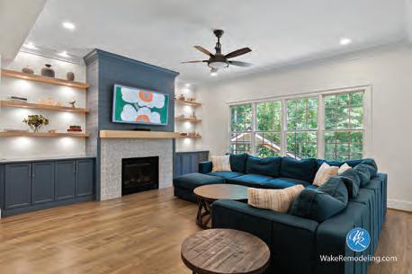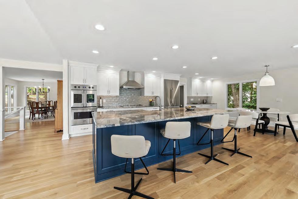 This home has undergone a remarkable transformation, blending refined craftsmanship with contemporary elegance. The kitchen now boasts all-new custom cabinetry, exquisite countertops, and a suite of premium appliances. A striking solid stone backsplash over the bar creates a dramatic focal point, beautifully enhanced by a layered lighting design, featuring above-cabinet, under-cabinet, and in-cabinet illumination for both function and ambiance. In the living room, a previously enclosed wall with doors has been reimagined into an open expanse of large, picture-framed windows, flooding the space with natural light and offering unobstructed views. The first floor’s aesthetic has been unified and elevated with the installation of rich, new wood flooring throughout. Completing the renovation, the powder bathroom now features a stylish new vanity, adding a touch of modern sophistication to this intimate space. The result is a seamless integration of luxury finishes, thoughtful design, and timeless appeal, an inviting yet impressive environment for both everyday living and gracious entertaining. blue-ribbon-construction.com 919-852-3700