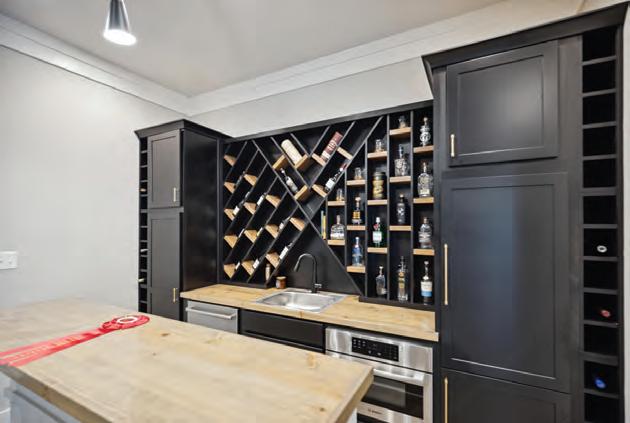 den was painted black, and a ten-foot-long martini bar stretched across the space. The most unusual request? No doors on the bathroom. “He thought it would be appealing,” Hank laughs, “but everyone else thought it was strange. My staff and I spent the whole weekend telling visitors the doors were on backorder.”