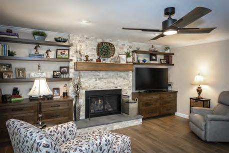 The journey of this home began in 2000 with the addition of a sunroom and deck. By 2023, the homeowners entrusted us with remodeling the bathroom, and in 2024, we renovated the first floor, including the kitchen and fireplace. The updated kitchen is now bright and spacious, featuring white cabinetry, a quartersawn oak island, and elegant quartz countertops. The removal of soffits allows the cabinets to extend all the way to the ceiling, while tile flooring that mimics wood creates a cohesive look throughout the space. The fireplace has been transformed with natural stone covering the original brick, making it a stunning focal point. The new mantel complements the quartersawn oak shelves, and Cocoon Italian porcelain tile adds both durability and beauty, providing the area with an elegant wood plank appearance.