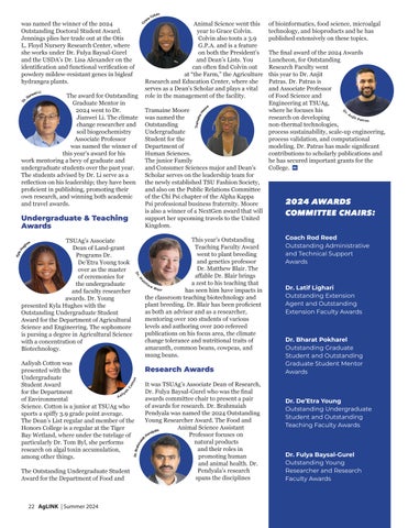 As always, this issue of AgLink brings to you stories about our amazing students and faculty members as well, highlighting their achievements in the classroom, the field, and the lab. Our goodbye to longtime faculty member Dr. Sam Dennis and a profile of graduate researcher Devin Moore are highlights you should enjoy.