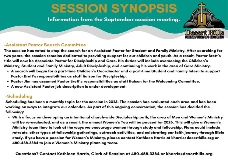 For more information or to RSVP: Email Pastor Brett at beverett@deserthills.org