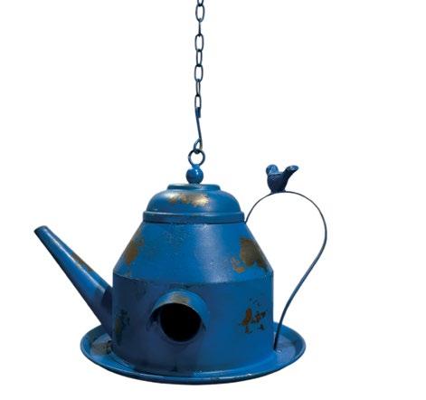 Available on a chain or stake, this quaint bird feeder/birdhouse comes in four popular color options.