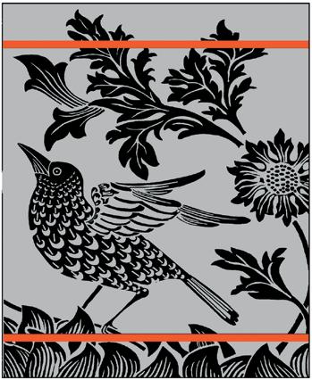 The 100% thick-woven jacquard cotton towel is made in Portugal. It features a black bird and bold orange stripes. Mierco, Inc. mierco.com info@mierco.com 425-891-5670