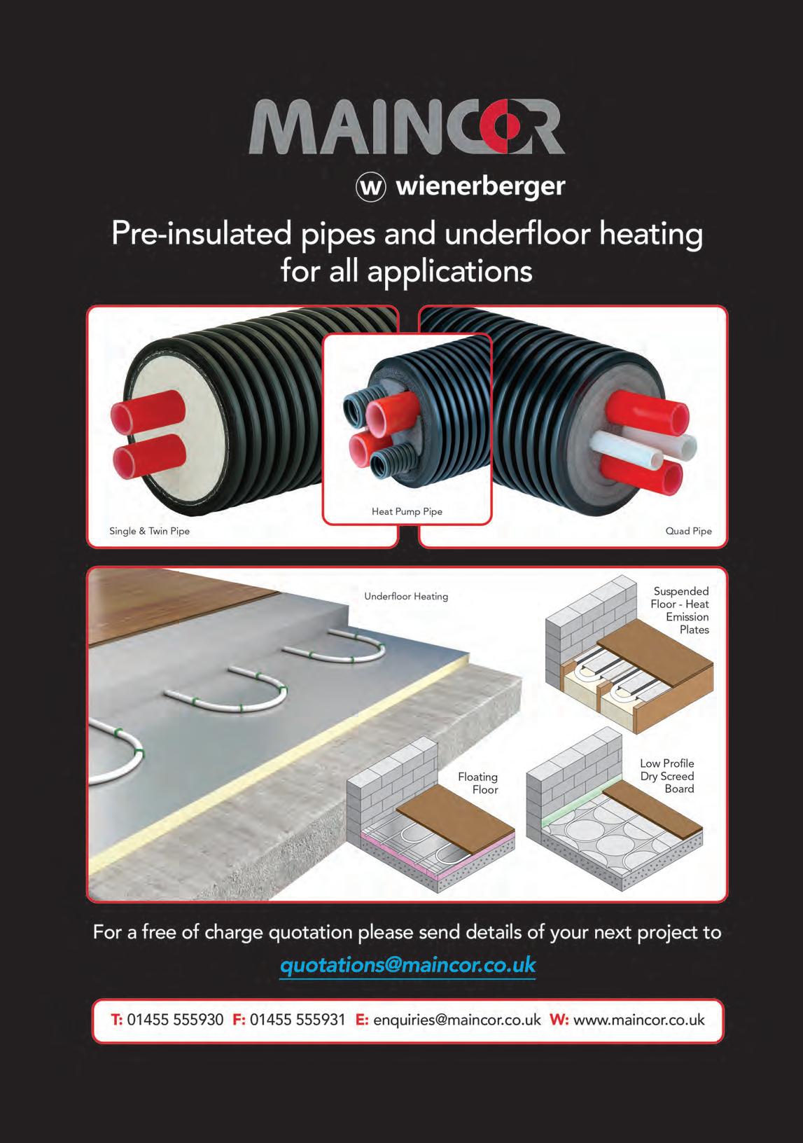 The government’s continued focus on low-carbon heating systems will see greater numbers of heat pumps being installed across Britain. With air source heat pumps being sited outside, insulation of pipework is essential. In this issue, P&H Engineering takes a look at the updates to BS 5422 and the measures installers need to take to ensure maximum e ciency and longevity of equipment (p22).