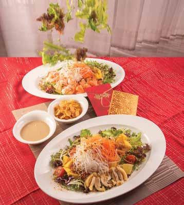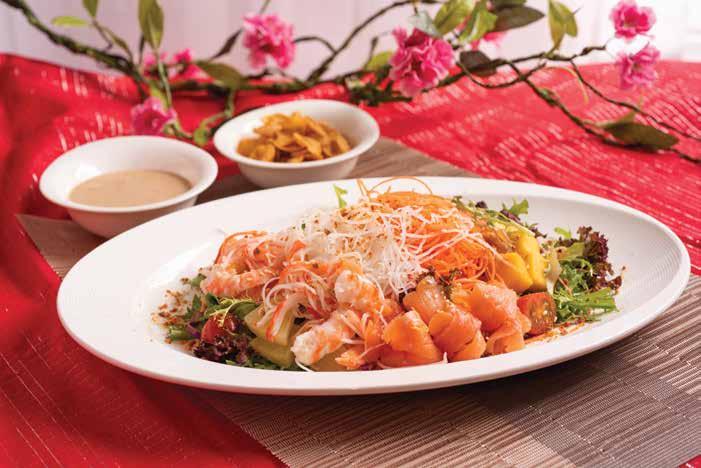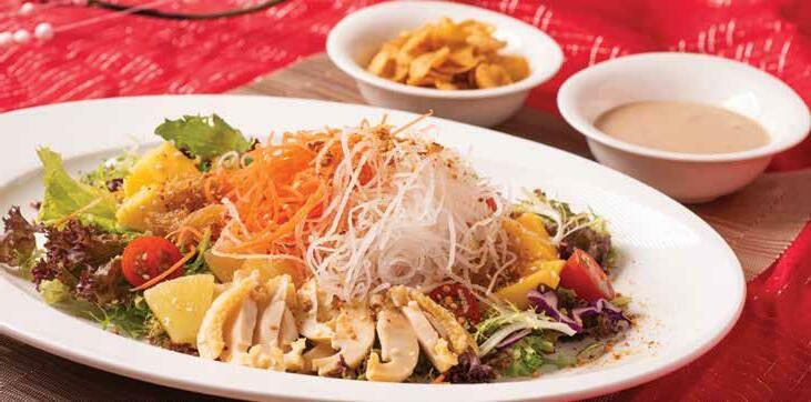 Toss to a year of good fortune with abalone, refreshing mango, pomelo and pineapple, mesclun greens, crunchy honey cornflakes & roasted sesame dressing