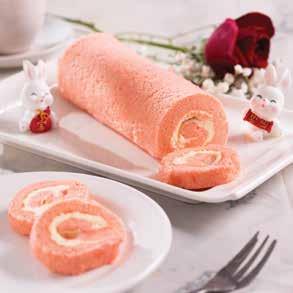 $8.80 (200 g) Soft and fluffy swiss roll with lightly scented rose cream and chopped lychee pieces. An ideal snack for any occasion!