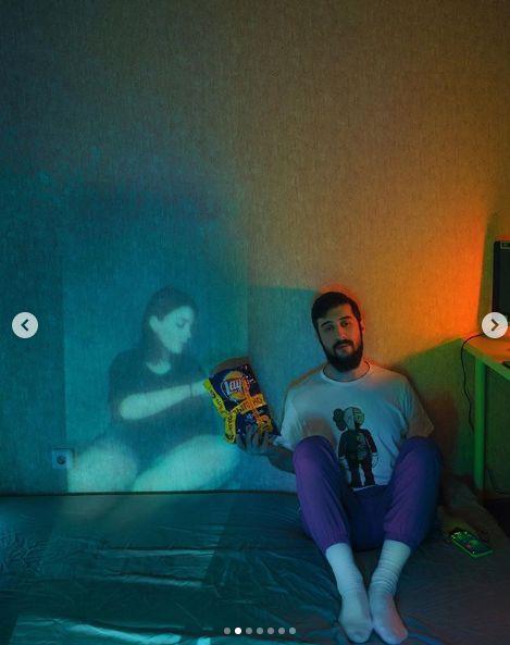 Karman Verdi 在小空間架起投影機,投射出與孤身一人的他共進 晚餐、看電視、烹飪的人影,即使在他專注地看平板電腦時,也希望 有個人在自己身後打電腦就好。