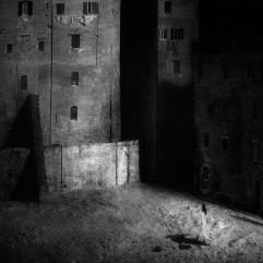 Marcin Sacha 作品中的場景在寒冷、灰色的地帶,通常包含令人 費解的迷宮、帶有圓形和方形大窗戶搖搖欲墜的建築物,以及漂泊的 孤獨個體。有時也會出現成群長相相似的人,他們被困在沒有出口或 出口很少的空間中。令觀看者很容易感受到幽閉恐懼症、失落感、困