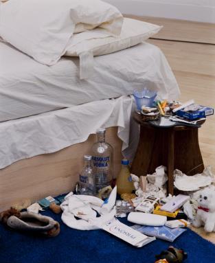 在 My Bed 瘋狂又髒亂的景象面前,我們幾乎能感受到那張床上 飄出的異味,皺巴巴、污跡斑斑的床單,猜想床的主人大概一分鐘前 才離開,也許只是為了去一趟洗手間吧。 然而這件作品最重要的正是:Tracey Emin 已不在床上了。她站 了起來,因此獲得了一種全新視角。能夠告訴大家眼前所見不僅僅是 一個衛生災區,更是過去這段時間,她存在的證明。只有在起床後, 在掙脫了那張床的掌握之後,才能夠完全認得這張床,認清一切又發 生了什麼。 Tracey Emin 非常誠實地向我們展示了她生活中各種私密和尷尬的元 素,並展現了一種「看見與承認」的勇敢,充滿力量的提醒我們,每 個人都有艱難的時刻,而那種該死與孤單,只有自己能去戰勝。