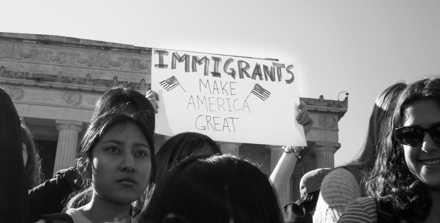 Students exited class and walked to the Tenleytown/AU Metro, where they huddled in packed Metro cars to the Farragut North Metro. From there, they marched to the Lincoln Memorial cheering and holding signs saying things like “Hot Girls Melt ICE” and “Love Thy Neighbor” as they walked to join other students from across the city.
