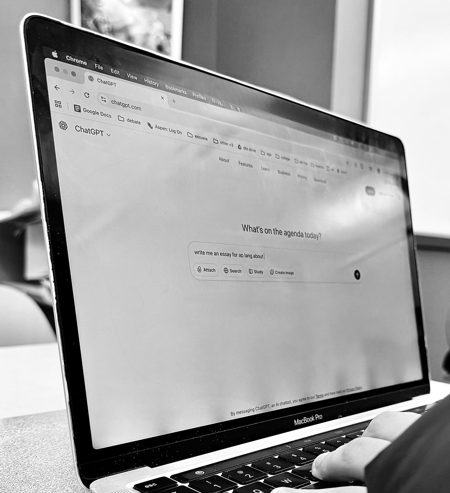 sophomore said she “uses AI on [her] home computer to give [her] ideas, outlines.” An anonymous junior added that he “gives AI work prompts and then paraphrases the answer it gives before running it through AI detectors so [he] doesn’t get caught.”