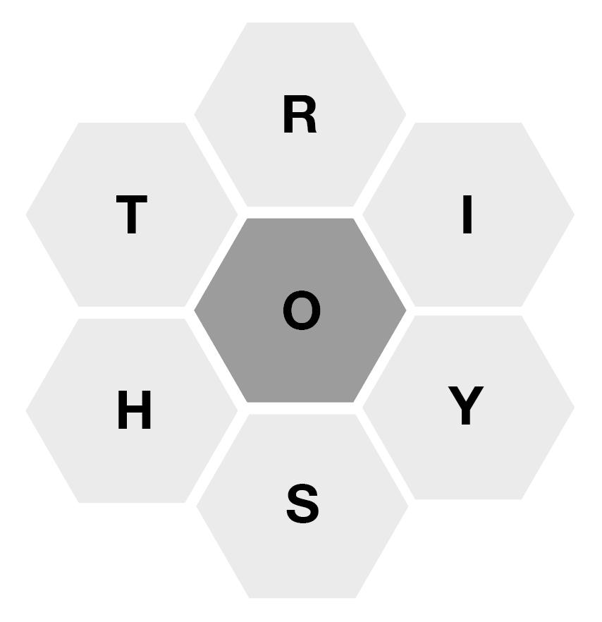 Find as many words as you can! Words must be at least 4 letters long and use the center letter at least once. Letters can repeat.