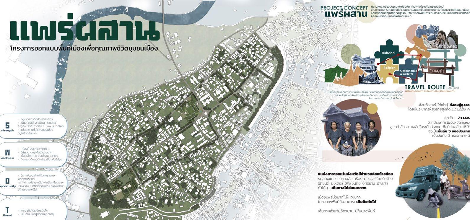 เมืองแพร่เป็นเมืองเก่าที่มีประวัติศาสตร์ยาวนาน และมีความสำาคัญทางเศรษฐกิจ แต่เนื่องจากแพร่เป็นเพียงแค่เมืองผ่าน ทำาให้เศรษฐกิจในปัจจุบันของแพร่นั้นชะลอลง เนื่องจากคนเพียงแค่่ผ่านไปผ่านมา โดยการ อกแบบและปรับปรุงแพร่ มีขึ้นมาเพื่อพัฒนาเมืองเก่า และส่งเสริมคุณภาพชีวิตให้คนในเมทอง รวมถึงเพิ่มเอกลักษณ์ที่น่าจดจำายิ่งขึ้นให้กับแพร่