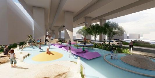 UNDERPASSWAY ZONE พื้นที่ที่เต็มไปด้วยความหลากหลายของช่วงอายุ ตามแนวยาวตลอดทางใต้ ทางด่วน เพื่อให้เข้าถึงได้ง่ายจากที่อยู่อาศัยที่เป็นแนวเรียงไปตลอดทาง ซึ่งมี ตั้งแต่พื้นที่ของเด็ก ของคนวัยเรียนและทำางาน รวมไปถึงวัยชรา