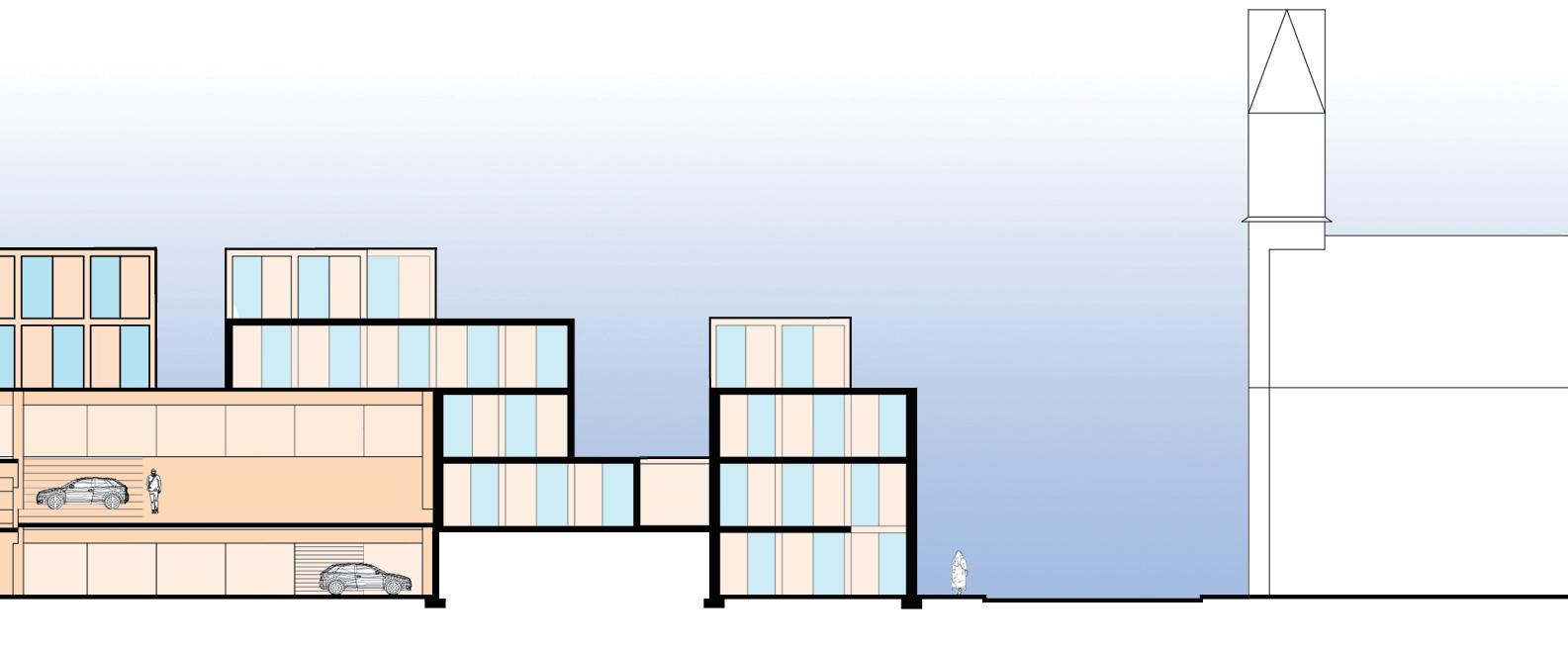began to subtract from in a way that kept the street wall intact and found a building height that fit well in the setting.