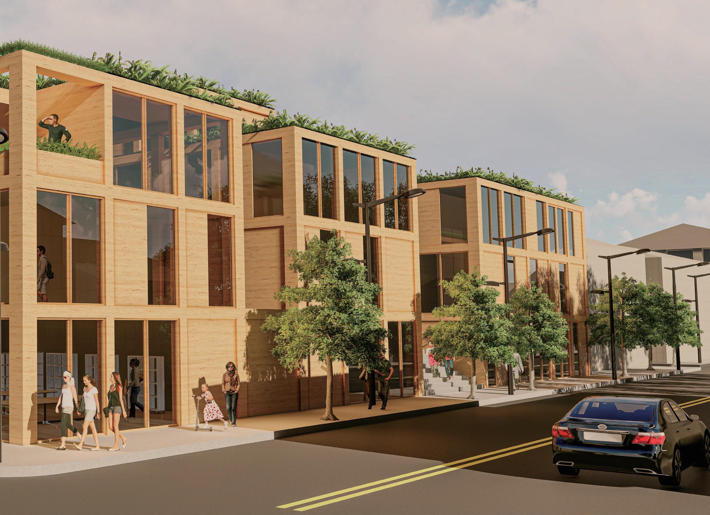 town, Lexington. The softness that comes with the cross-laminated timber and the sensibility of the massing allows the development to not harm or disturb the surround architecture as well.