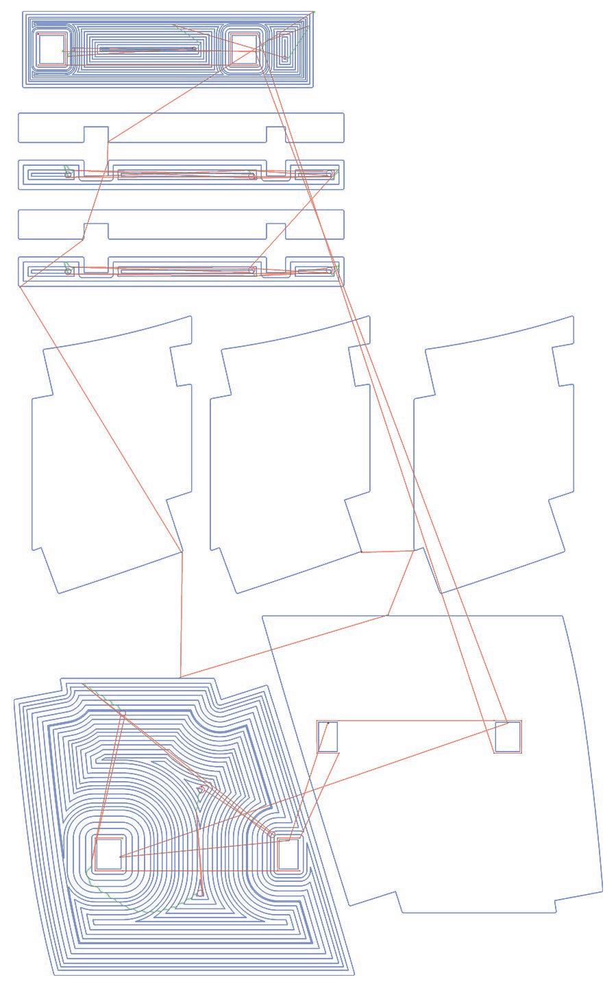 Featured to the right is the C.N.C. toolpath I used to cut out the final model plywood pieces.