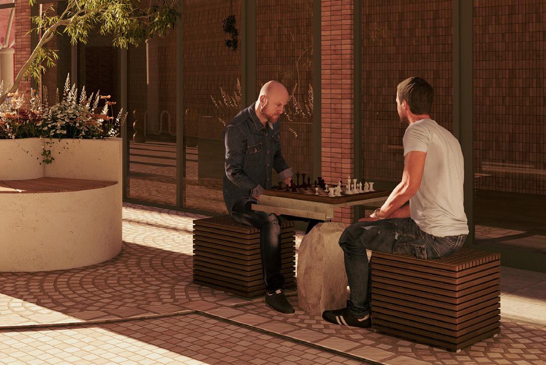 The most active end of the laneway, anchored by the food truck area. This zone encourages movement, play and engagement through interactive game tables and open edges for lingering, bringing vibrancy and activity to the corridor.