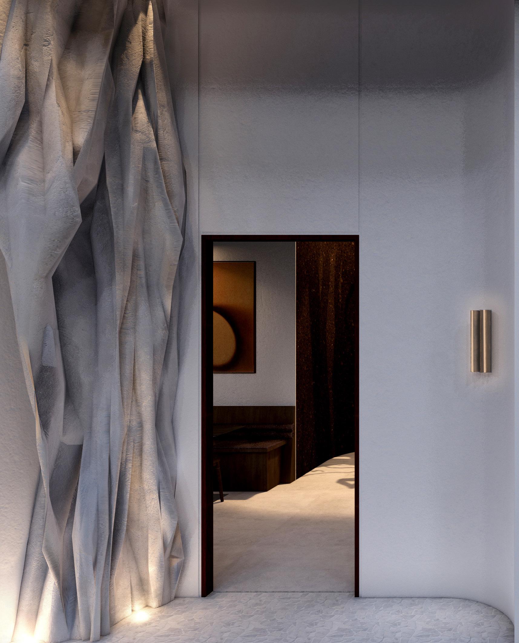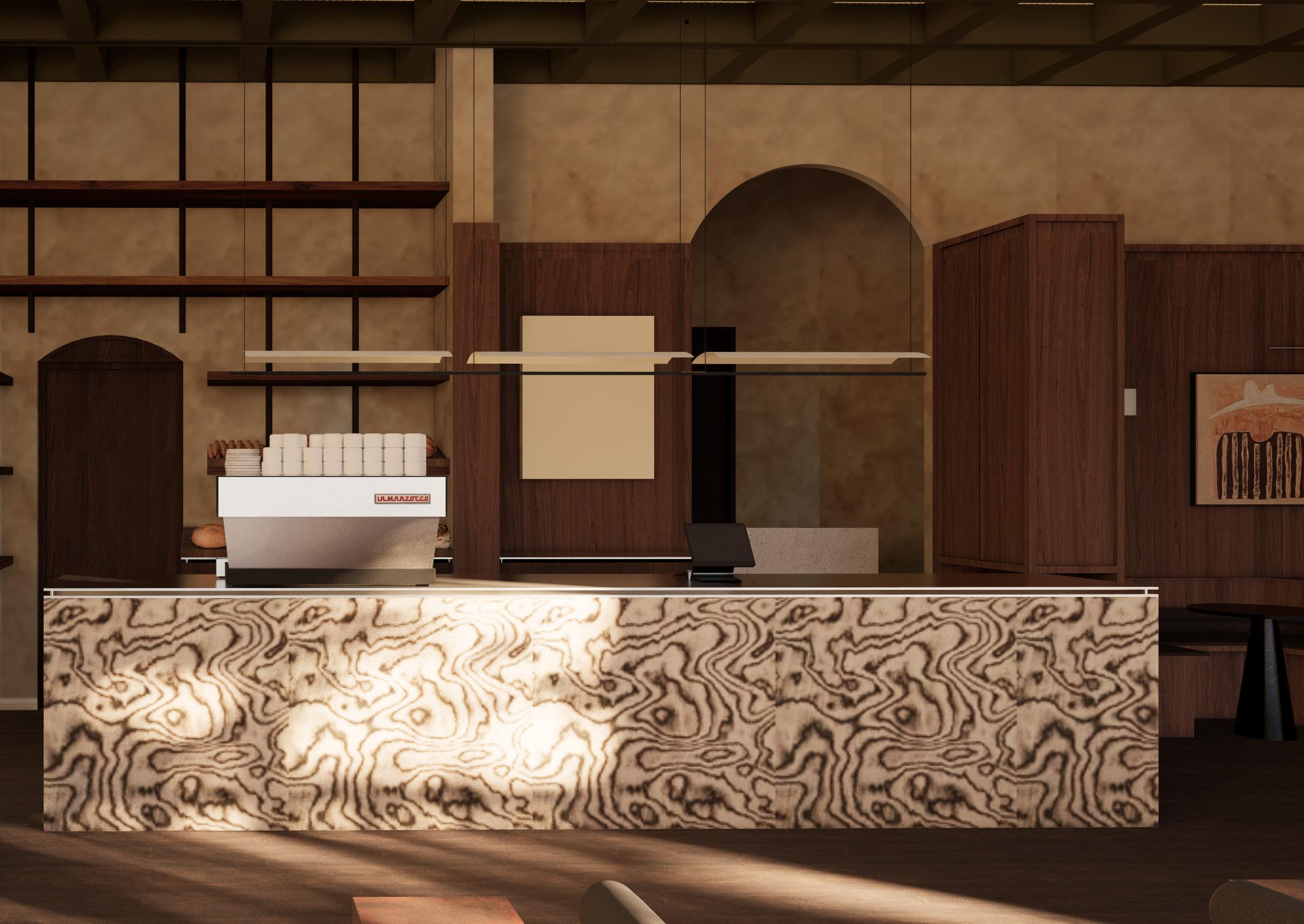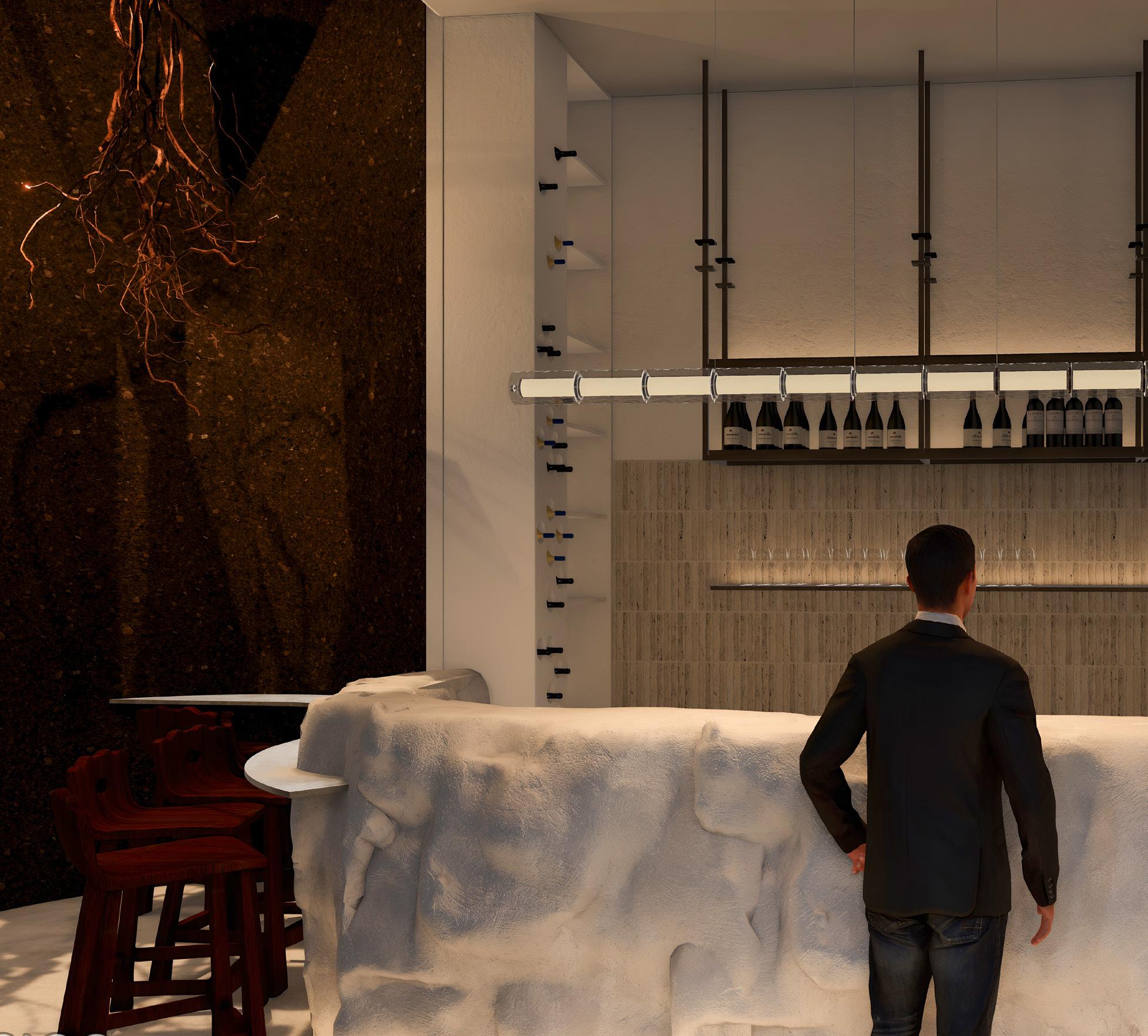 Forma Terra is shaped by a study of erosion, weight and natural form. The concept focuses on how sculpted surfaces and grounded materials can create a quiet sense of permanence within a small hospitality setting. The design establishes a calm rhythm through simple geometry and considered spatial transitions, allowing the venue to feel both intimate and open to its surroundings.
