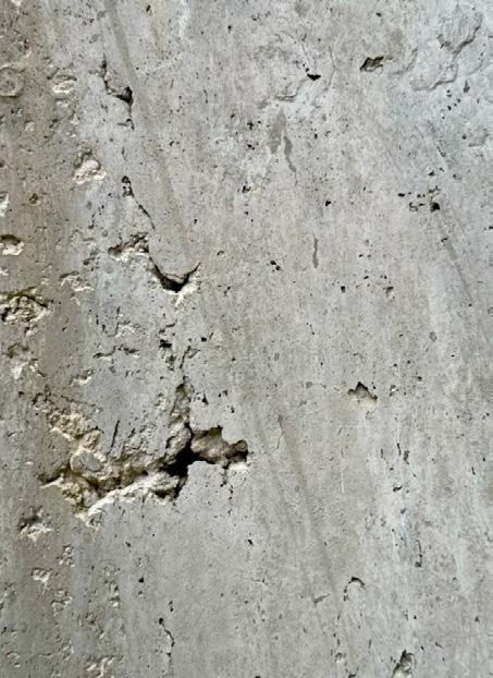 - remove corten steel hugging concrete columns - tiling a different shade of concrete through entry