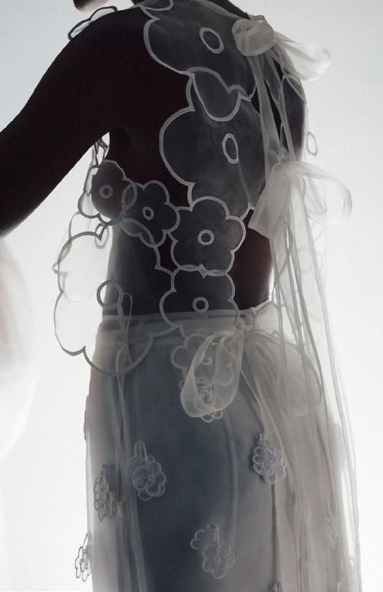 characterised by voluminous forms, sheer layers and intricate handwork. The pieces are delicate yet purposeful, balancing softness with a contemporary edge.