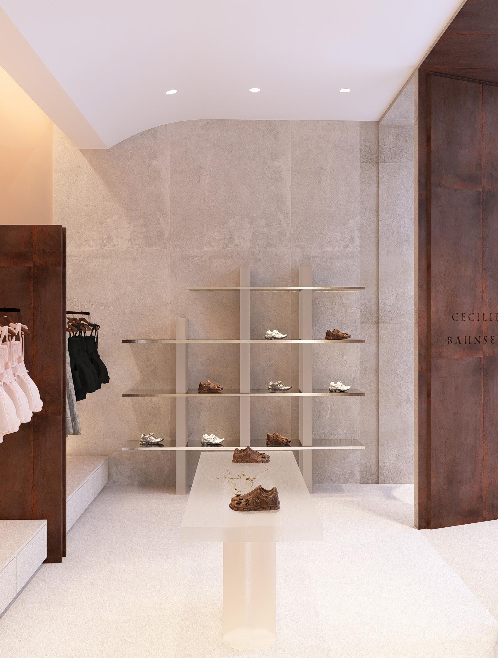 This project interprets Cecilie Bahnsen’s distinct design language through a series of spatial studies that move from temporary installation to permanent retail. The focus is on translating her soft sculptural forms and quiet materiality into environments that feel refined, immersive and intentional. Each phase builds on the last, gradually shaping a complete spatial identity for the brand.