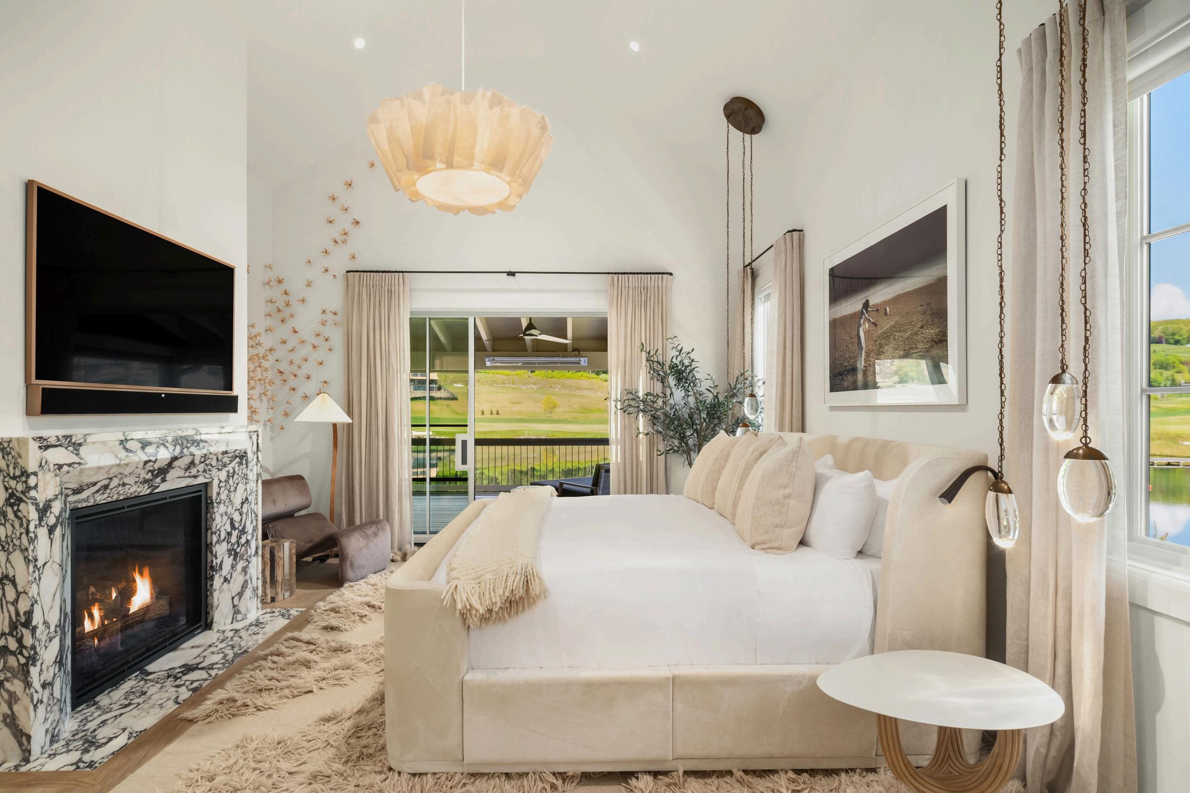 Experience the peaceful comfort of the primary suite, featuring an imported marble fireplace, direct terrace access and pristine view of the lake. This luxurious retreat ensures every day begins with serenity and an exceptional view.